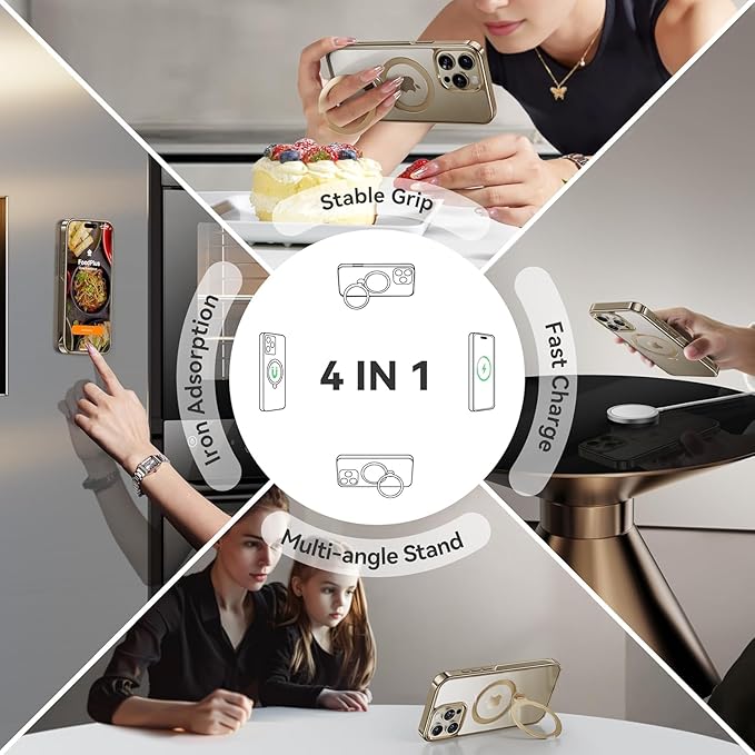 - 【360° Spin Stand-Premium Material】 Made from high-quality aerospace titanium material with high-temperature forging. The newly upgraded four-way locking titanium frame has increased the durability of the ring by 200%. Free your hands anytime, anywhere, making it perfect for hands-free video calls, watching video or browsing content both horizontally and vertically.【Only for iPhone 15 Pro】