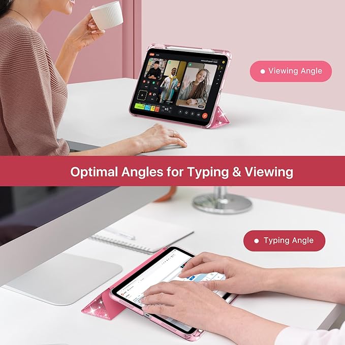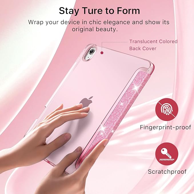 MoKo for iPad (A16) 11th Generation Case 11 Inch 2025, iPad 10th Generation Case 10.9 Inch 2022 with Pencil Holder, Slim Light Trifold Protective Cover with Hard PC Translucent Back Shell,Glitter Pink