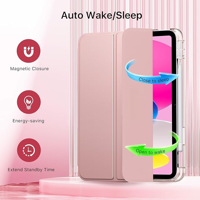 - Auto Sleep/Wake Function: The slim iPad case 10th generation supports auto sleep and wake feature, open or close the case, wake up the tablet or put it into sleep, save battery power and extend the use time. Precise cutouts support Touch ID functionality, and easy access to buttons, ports, speakers and more