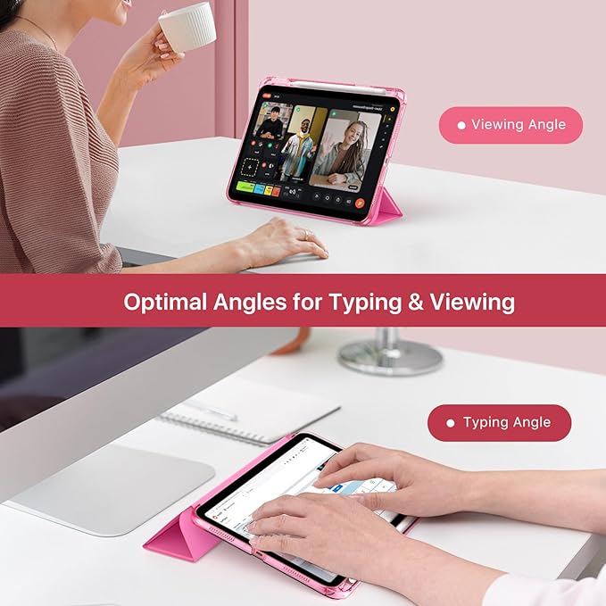 MoKo for iPad (A16) 11th Generation Case 11 Inch 2025, iPad 10th Gen Case 10.9 Inch 2022 with Pencil Holder, Slim Light Trifold Protective Cover with Hard PC Translucent Back Shell, Persian Pink