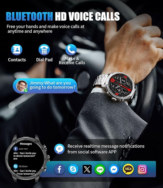 - 【2 Straps, 2 Styles】This mens smart watch comes with two interchangeable straps, offering a look for every occasion. The stainless steel band adds a sleek, polished feel, perfect for formal events or business settings. The black silicone strap is lightweight, breathable, and sweat-resistant, making it ideal for workouts or casual wear.With these two versatile options, your watch adapts to any situation, blending style with practicality.