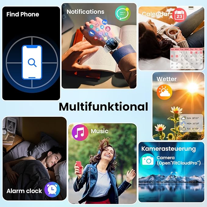 - 【Bluetooth Calling & Smart Notifications】 Equipped with Bluetooth 5.3, this fitness smartwatch enables hands-free calling via built-in HiFi stereo speakers and microphone. Compatible with Android 6.0+/iOS 9.0+ devices, it syncs with the FitCloudPro app to store contacts for instant dialing. Receive real-time alerts for incoming calls, WhatsApp, Facebook, Instagram messages, and more—all viewable on your wrist for seamless connectivity