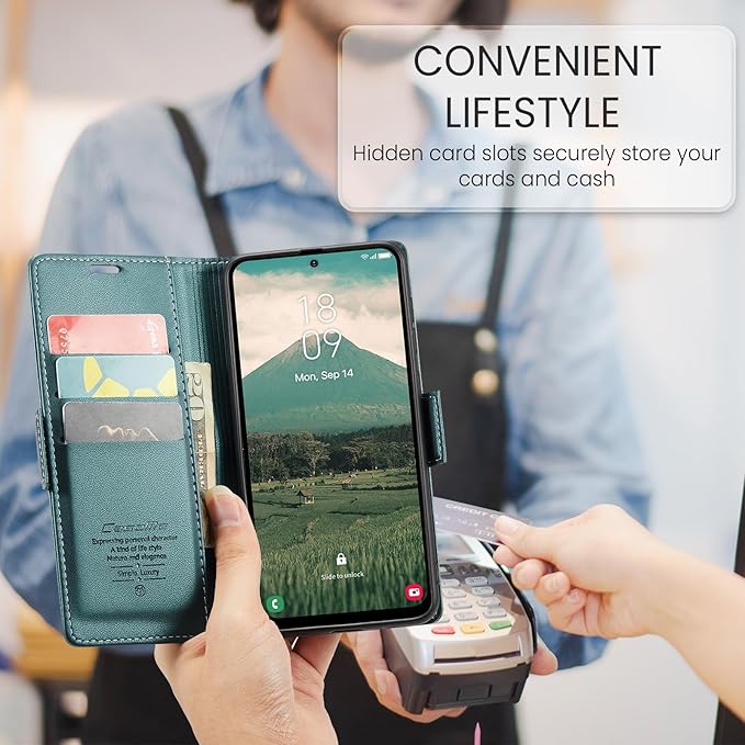 for Samsung Galaxy A36 5G Case, Premium PU Leather Wallet Case Flip Cover with [RFID Blocking][Card Holder][Stand Function] Shockproof Protective for Samsung Galaxy A36, Blue-Green