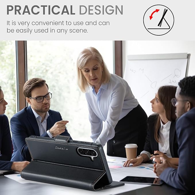 - [Multifunctional] This Samsung Galaxy A56 5G Flip Wallet Leather Case with Adjustable Stand frees up your hands by allowing you to watch videos or movies at the best angle.Whether you're studying,working,exercise or entertainments, this wallet case will meet your needs.