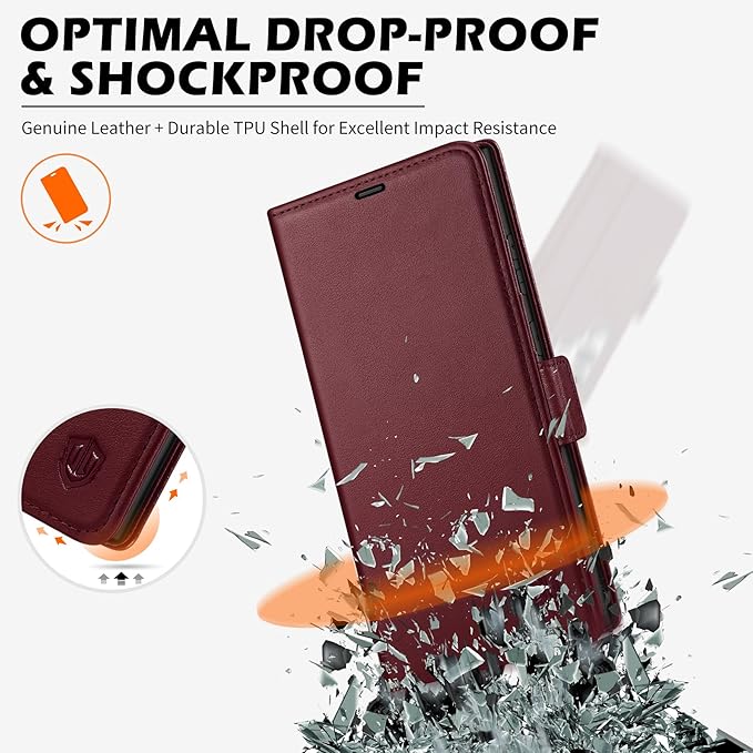 - 【GENUINE LEATHER & FULL PROTECTION】 1. SHIELDON Galaxy S25 Ultra leather cases are made from top layer cowhide leather + TPU phone holder case. 1. These hides are selected for quality, strength, character and grain. 2. Soft full-body shell comes with shockproof edge and ensures your phone against scratches, drops and bumps. 3. The increased lips around the lens will protect your camera