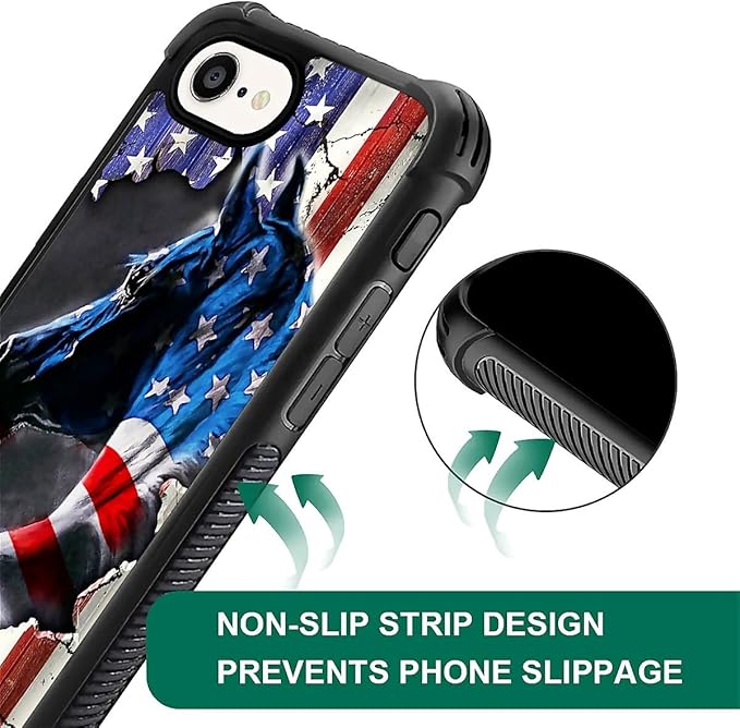 Compatible with iPhone 16e Case,American Flag Horse Phone Cover for Men/Women,Soft TPU Anti-Skid Thread and Four Corner Anti-Collision Protection Case Compatible with iPhone 16e 6.1inch