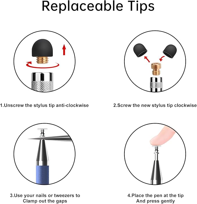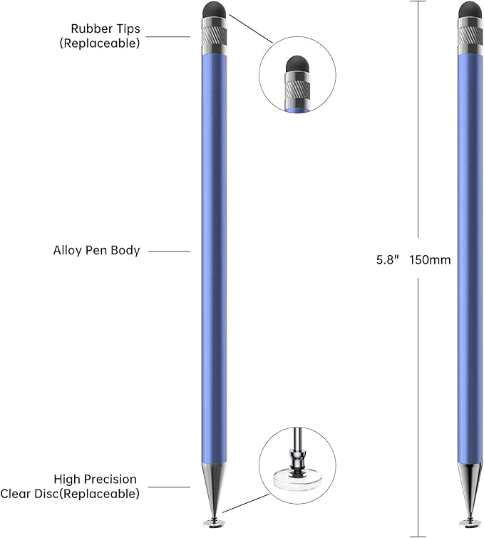 - 【High Accuracy and High Sensitivity】The stylus adopts a flexible transparent disc tip that can flexibly fit on the screen without leaving disconnected lines on your tablet or phone, providing better flexibility and accuracy, Allowing you to see exactly where the mark is and giving an accurate point, while the rubber tip and disc tip can give you two different touch experiences.