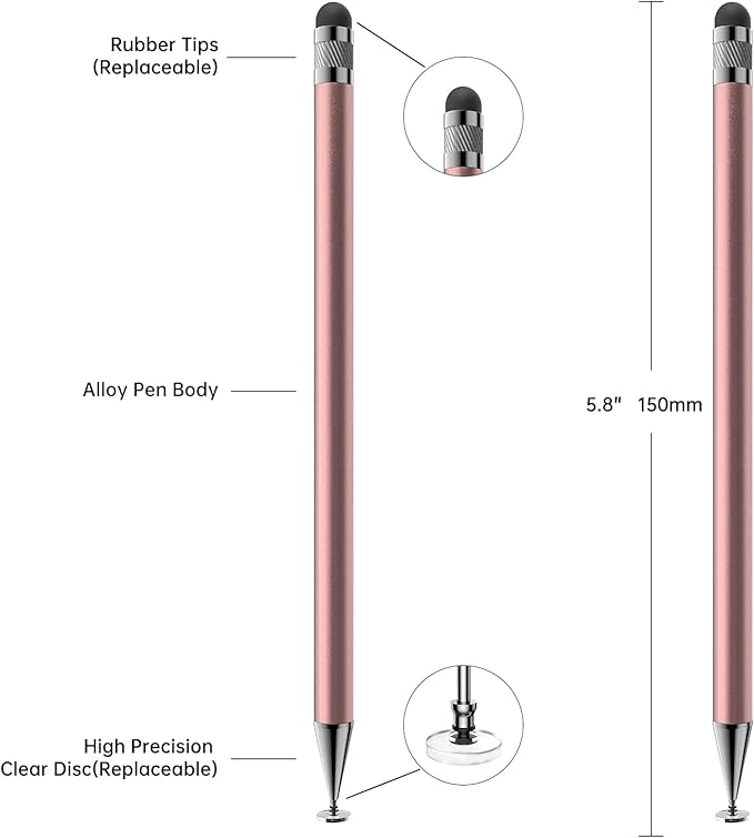 Bopomofo Stylus (5 Pcs), 2-in-1 Stylus Pen for Touchscreen, High Precision and Sensitivity, Suitable for iPhone/ipad/Android Tablets, Compatible with All Touch Screens,Rose Gold