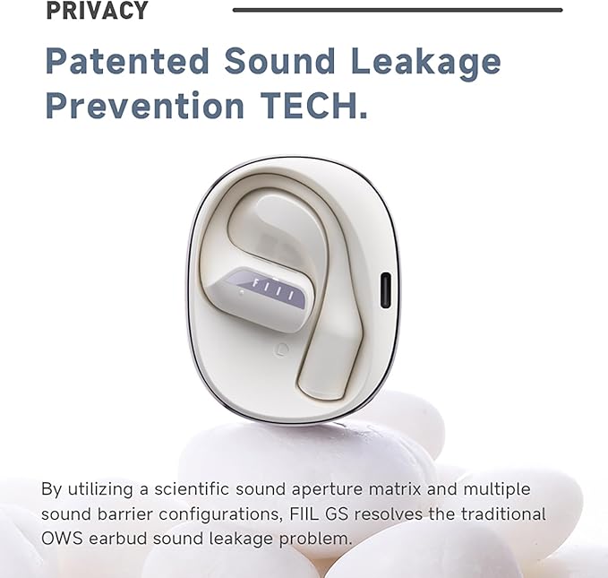 - 【Patented sound leakage prevention technology】: FIIL GS Open-Ear Wireless noise reduction earphone through a more scientific sound aperture matrix & multiple sound barrier configurations, sound leakage is systematically prevented.