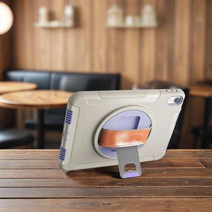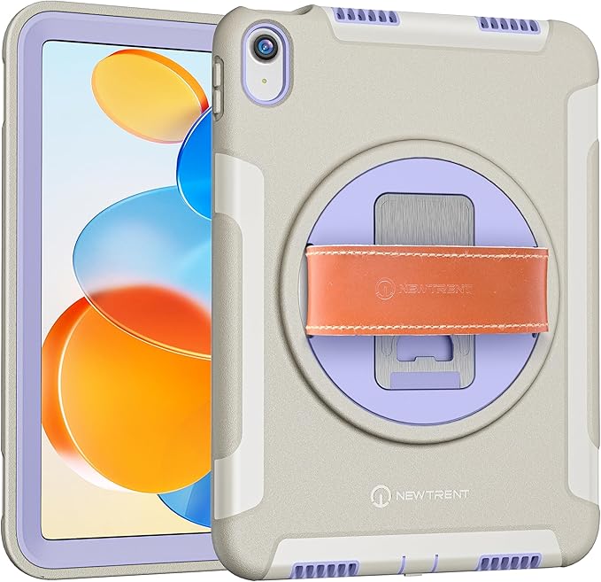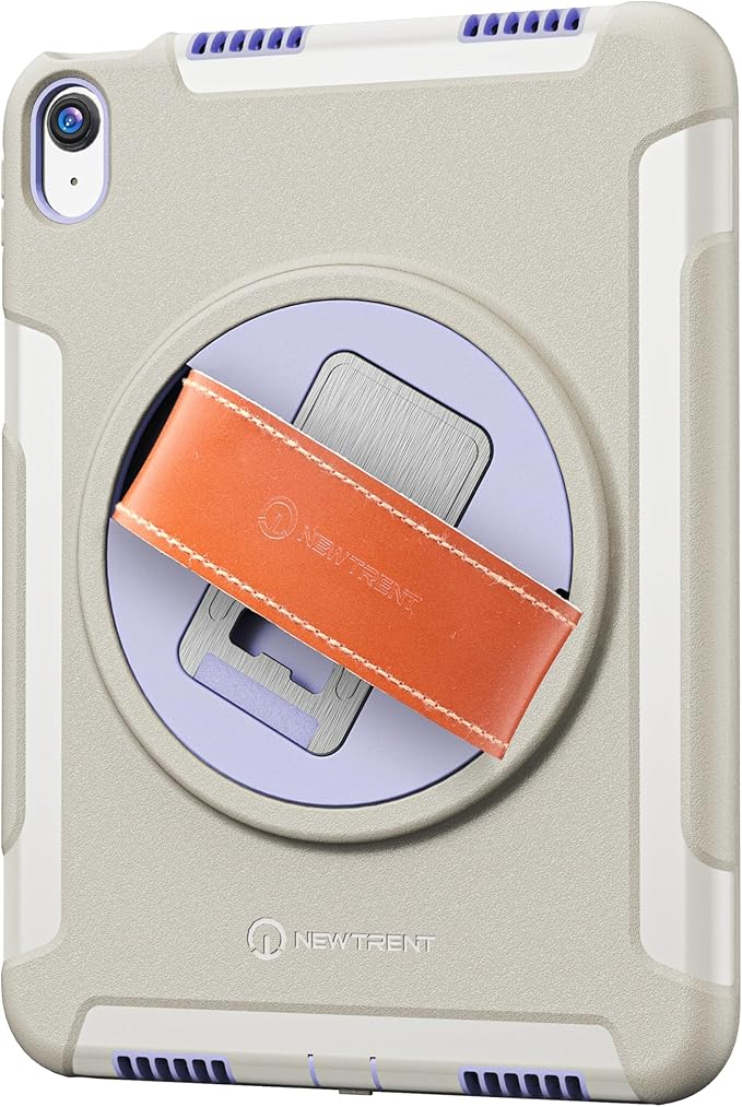 Original Rugged iPad Case for iPad 11 (A16) 11-inch (2025) & iPad 10th Gen 10.9-inch (2022) | 360° Rotating Kickstand, Genuine Leather Hand Strap, Built-in Screen Protector (Purple Grey)