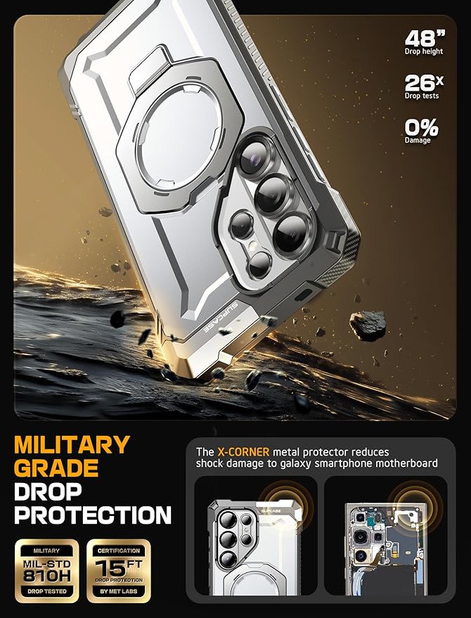 - 15FT drop protection, featuring four-corner airbag technology for shock absorption adhering to rigorous US military-grade standards.