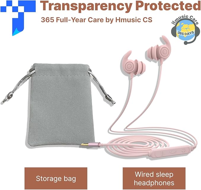 Hmusic Sleep Headphones,3.5mm Wired Sleeping Earbuds,30dB Noise Isolate Sleep Plugs,2g Lightweight, Ultra-Soft Silicone,Snail Flat Thin Bed Earphones for Air Travel,Work,Audio Book,Meditation