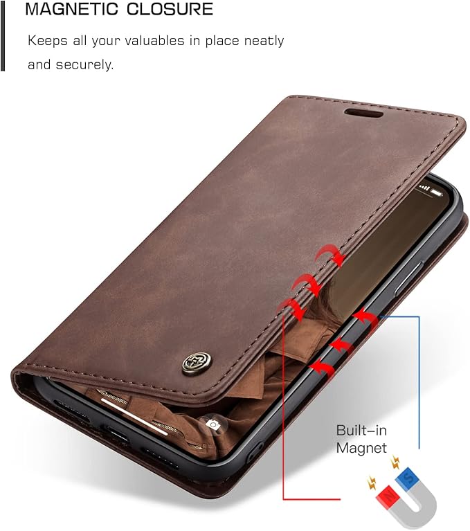 - [Free Access] The magnetic flap closure ensures the security of your cards and notes, and also provides better protection in the event of a fall. It allows you to use all the buttons, ports, sensors and camera lenses, but does not affect the protection of the phone.