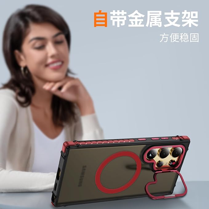 Magnetic for Samsung Galaxy S24 Ultra Case Red Fit for MagSafe Military-Grade Shockproof Protection Adjustable Kickstand Slim Matte Anti-Fingerprint Cover Men Women