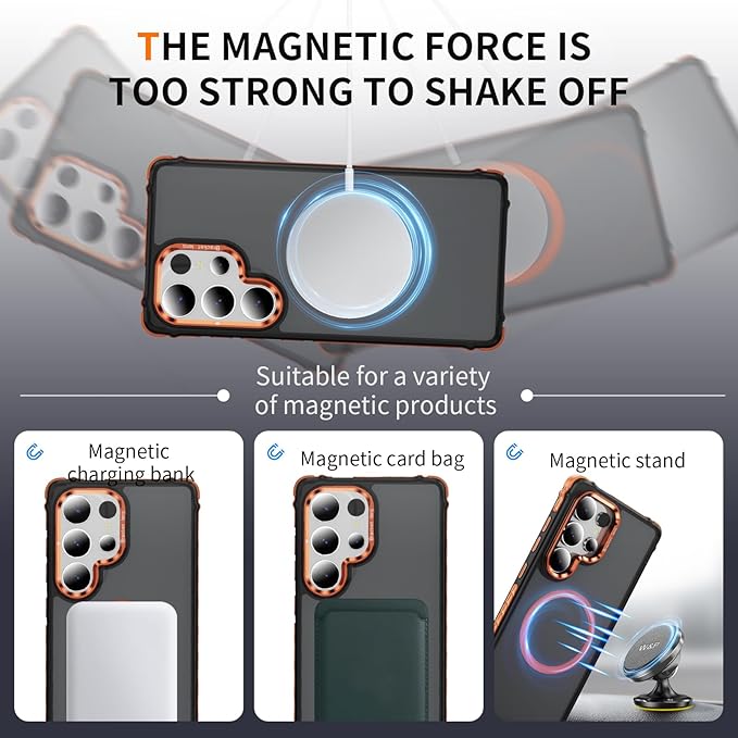 - 【Super-Strong Magnetic Attraction for Stable Fast Charging】The fits Samsung Galaxy S25 Ultra case magsafe is equipped with a built-in strong magnet, provides a super-strong magnetic connection, ensuring automatic alignment that ensures your Samsung Galaxy S25 Ultra stays in place no matter how it rotates,and It also works seamlessly with most MagSafe accessories.