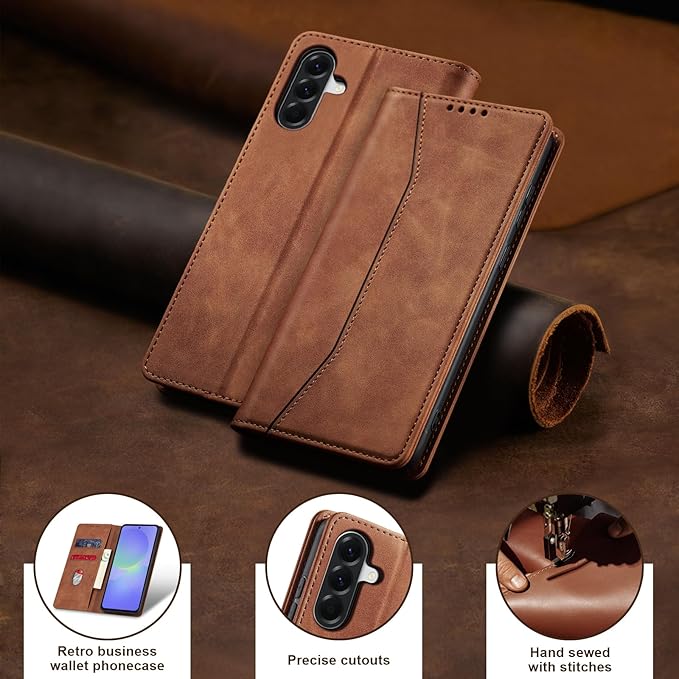 Jasonyu Flip Wallet Case for Samsung Galaxy A36 5G,Leather Magnetic Folio Cover with Card Holder,Kickstand - TPU Shockproof Durable Protective Phone Case,Brown