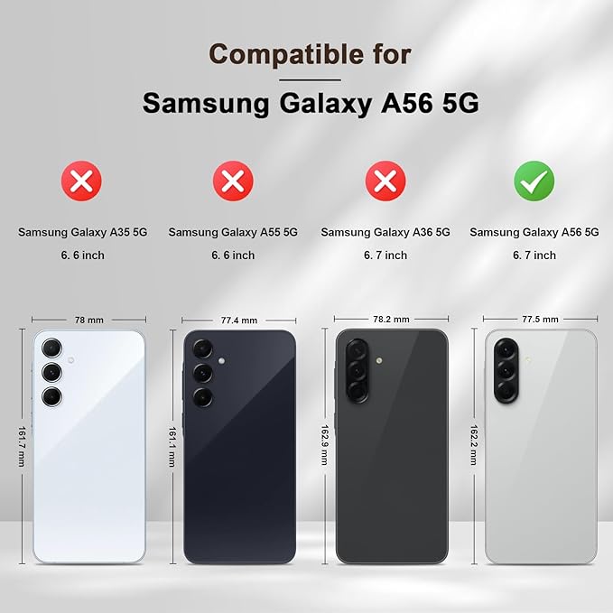 - 【Compatibility】:Designed for Samsung Galaxy A56.The Leather wallet case precise cutouts for easy access to all ports, buttons, sensors and cameras. Soft buttons with good response, are easy to press.Please check your phone model that is correct before placing an order.