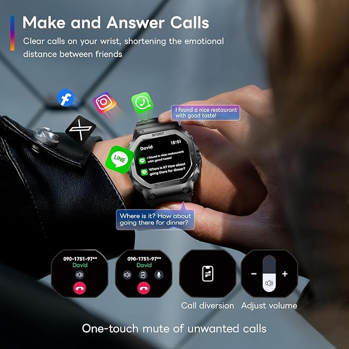 - [Bluetooth Calling, Smart Notifications & Long-Lasting Battery]This 2025 next-generation smartwatch for iphone and Android phones features Bluetooth 5.3, offering enhanced energy efficiency, a high-speed 48 Mbit/s transmission rate, and a stable connection up to 10 meters. Even without your phone, you can receive notifications from Twitter, Facebook, and more, as well as answer or reject calls hands-free.Equipped with a high-capacity battery, it charges fully in just 2 hours, providing up to 4 days of use and 20 days of standby time—perfect for travel or business trips. Compatible with Android 8.0+ and iOS 10.0+ , ensuring seamless use even when switching devices.