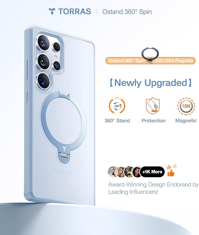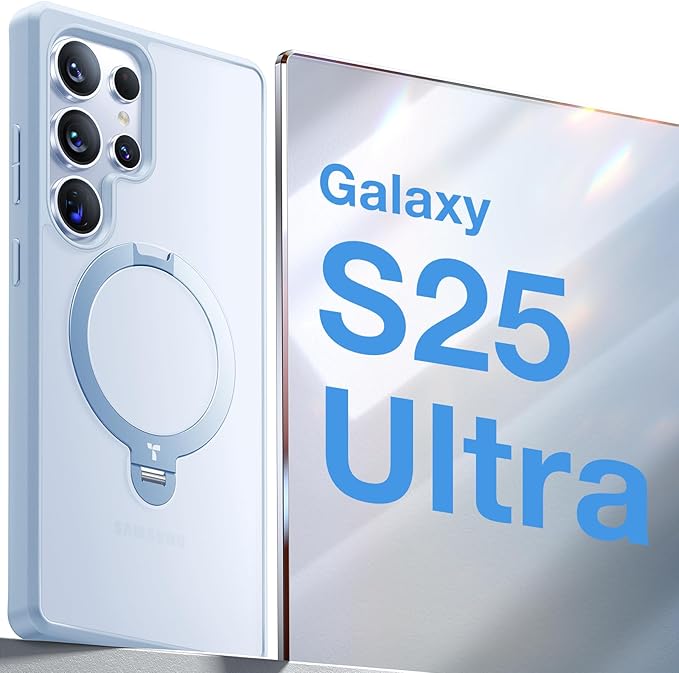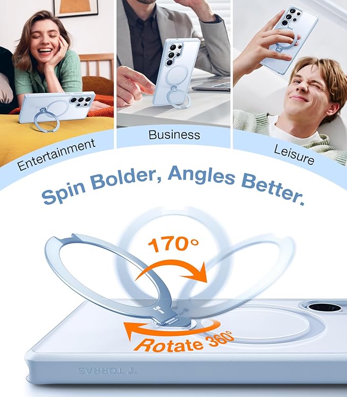 TORRAS 360° Spin Magnetic Stand for Samsung Galaxy S25 Ultra Case, Fit for Magsafe, Shockproof Slim Protective S25 Ultra Case with Kickstand for Women Men, Ostand Spin, Translucent Frosted Silverblue