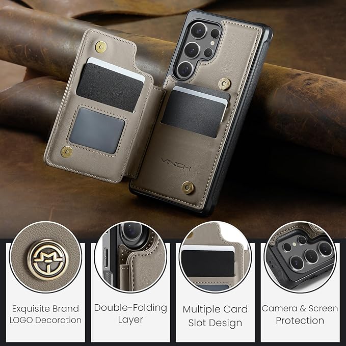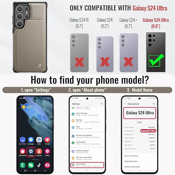 - for Samsung S24 Ultra Case with Card Holder: The for Galaxy S24 Ultra case is designed with card slots for drivers license, insurance cards, door access card, debit cards, etc; The case is easy to hold and remove, so you don’t need to take bulky purse to outdoor; This case for S24 Ultra is suitable for all ages of women & men