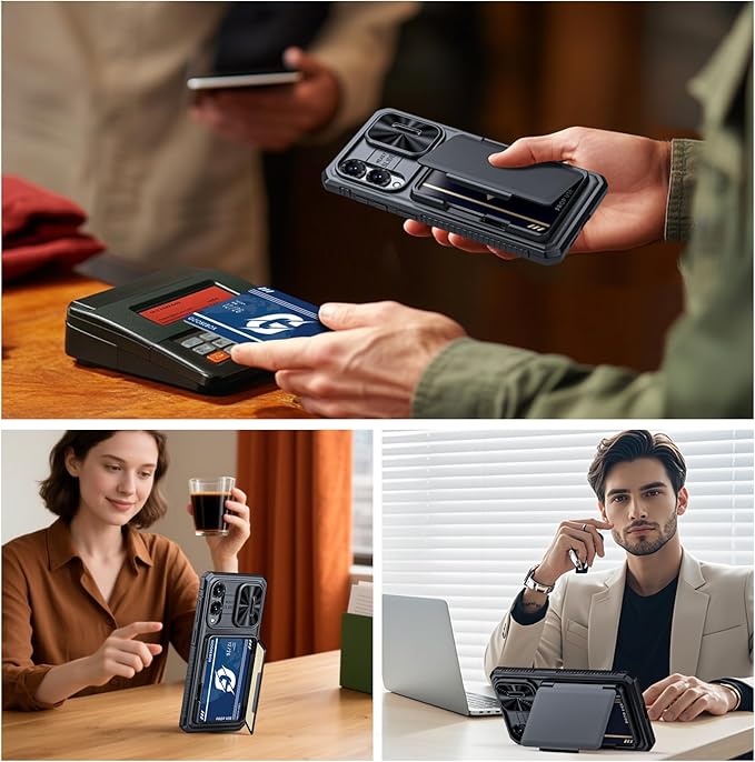 - [RFID-INDUSTRY TESTED SECURITY] This galaxy s25 edge wallet case with RFID, Tested by an independent German quality control institute. Our wallets block the 13.56 MHz band and protect against data theft by RFID scanners. you can safely store 4 cards and some cash. When you're go to playing or driving,just take this s25 edge wallet case to easily take your cards and cash