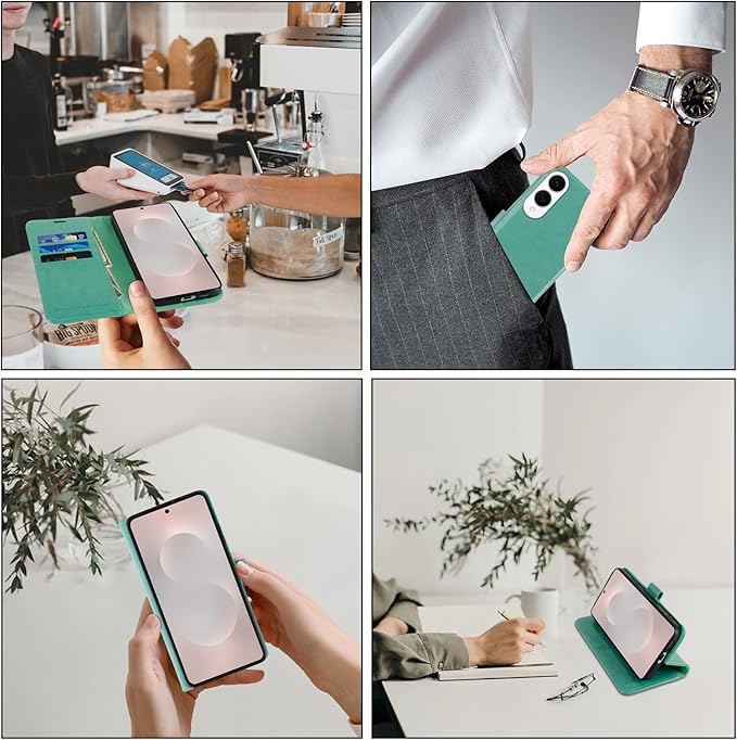 - All-around Protection: This Samsung S25 Edge wallet case consists of a premium leather outer shell and a TPU inner shell. The outer leather has a luxurious and natural texture that is comfortable to the touch and protects against scratches and fingerprints. The soft and durable TPU inner shell with raised S25 Edges and cushioning design provides all-around protection for your phone, even if it is dropped from a high place without any damage.