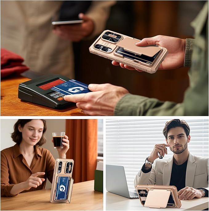 - [CARD HOLDER DIMENSIONS] We kept the dimensions of our s25 edge case card holder slim wallet to 3.4" x 2.2" x 0.17". It will fit in your pocket perfectly without bulging out. the samsung galaxy s25 edge wallet case with edge raised protection, when your galaxy s25 edge phone falling, case edge raised screen & camera lens cover protect and built-in safety anti-shock pads inside, card holder cards will not falling out