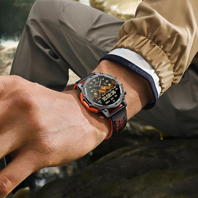 - 🏆【3-Proof Military Smart Watch,Tough Guy Style Built to the Wild】This rugged military smart watch is designed with a rugged titanium bezel and stainless steel back, the smart watches for men case is meticulously polished and stitched with fine metal craftsmanship,showed the sense of power. The military outdoor smart watch passes strict military-grade tests ,that is wear-resistant, shock-resistant, water-resistant and sand-resistant and builts to withstand the wild.
