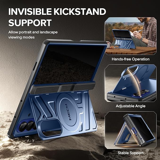 - [High Hardness Privacy Film & Hidden Stand] The zfold 7 case front cover built-in a high hardness exceptional quality privacy screen protector film, protecting your phone screen and personal privacy anytime. The raised edge screen and camera prevent scratches. The case is built with a sturdy, large kickstand that can be placed horizontally. You can watch videos and read books online free your hands at any time. When not in use, the stand can be perfectly hidden and won't add extra bulk