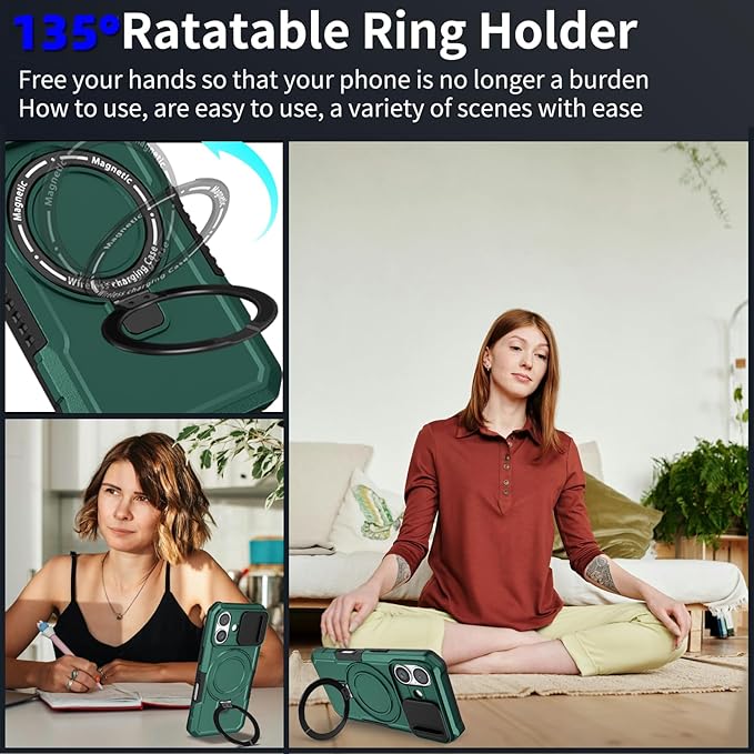 - Built-in Kickstand Ring:This 16 phone case stand allows you to look down at your phone at a comfortable angle, whether horizontally or vertically, freeing your hands to read, watch movies, play games and communicate with friends face to face.