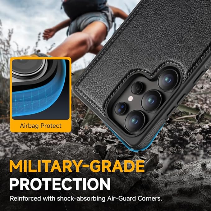 - Delicate Vintage Leather Case - Crafted from premium vegan leather offers soft nature feel and develops natural patina over time. Features unique leather texture provides soft & comfortable grip, creates luxury vintage look for Galaxy S25 Ultra.