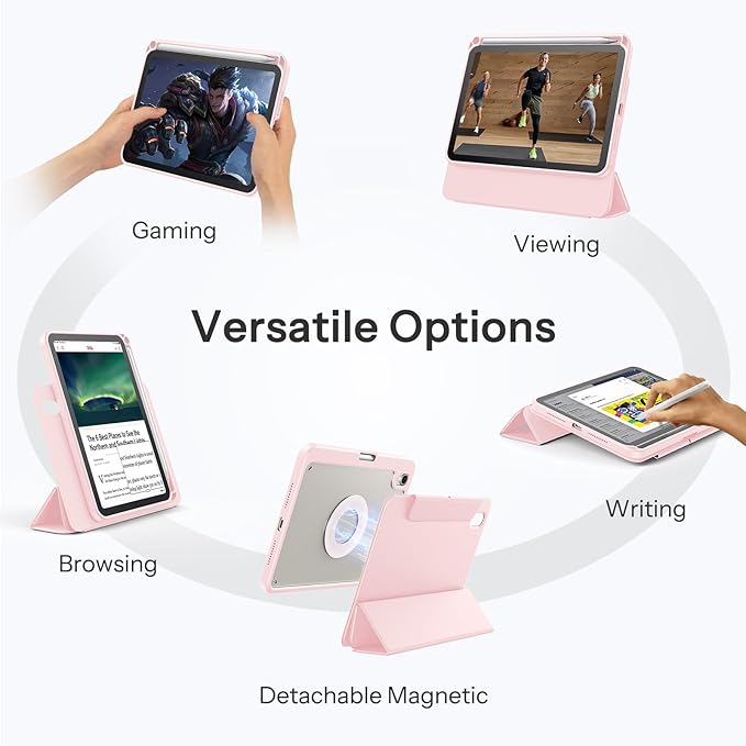 - Detachable Magnetic Cover: The magnetic clear back can be removed completely for comfortable gaming or cooking, while the tri-fold front offers a more stable vertical/horizontal viewing angle to meet the needs of different scenarios