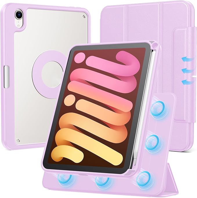 - Automatic wake/sleep: The magnetic case can automatically turn the screen on and off with the opening and closing of the cover. No buttons, no hassle,and it can extend the battery life of your iPad mini a17 pro