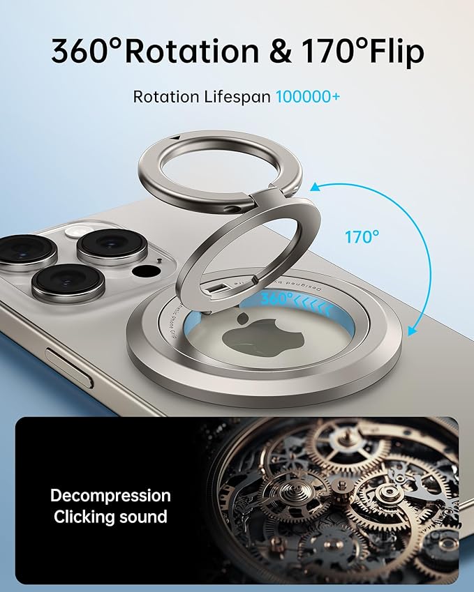 - 【360° Rotatable & 170° Foldable Design】 The dual-ring design allows for multi-angle adjustments to meet different usage needs. The stable hinge lock system is perfect for office video calls, selfies, and media streaming. This phone ring stand has been tested to withstand over 6000 folds without loosening, significantly improving its durability.