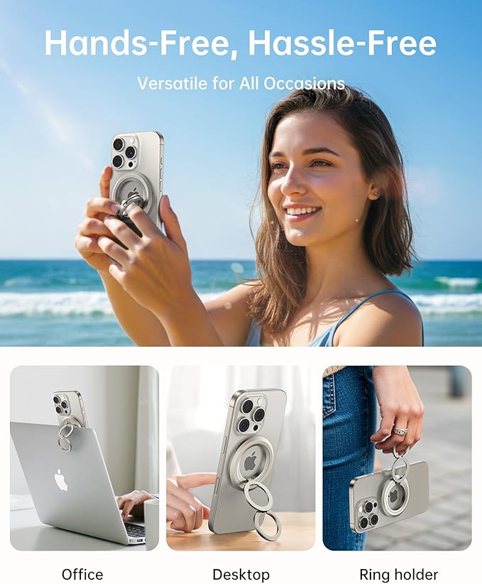 - 【Experience Ultimate Versatility with the Syncwire MagSafe Phone Ring Holder】 The perfect hands-free solution for crowded commutes on subways or buses. Whether placed on your desk, kitchen counter, or used during video calls, movie watching, music listening, or makeup application, the Syncwire Phone Ring Stand elevates your daily activities with convenience and style.【What You Get】Syncwire Magnetic Phone Ring Holder for MagSafe, 2 Round Metal Rings (White & Black), Positioner, User Manual.