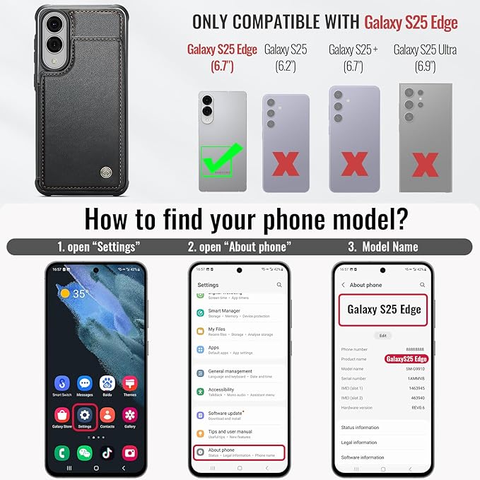 - for Samsung S25 Edge Case with Card Holder: The for Galaxy S25 Edge case is designed with card slots for drivers license, insurance cards, door access card, debit cards, etc; The case is easy to hold and remove, so you don’t need to take bulky purse to outdoor; This case for S25 Edge is suitable for all ages of women & men