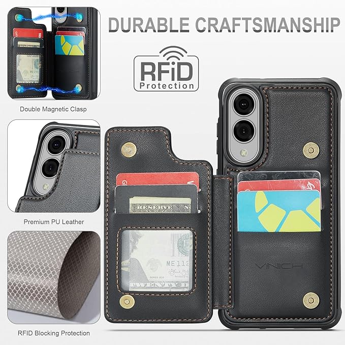 Vinich for Samsung Galaxy S25 Edge Wallet Case with Card Holder, RFID Blocking Credit Slots Kickstand Shockproof Phone Cover for Women Men, Black