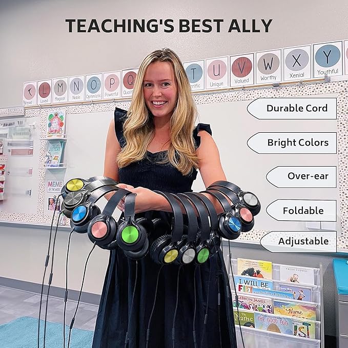 - High-Quality & Durable: Made with thickened nylon cable and gold-plated jacks, these kids headphones can withstand up to 44 lbs of weight and maintain a stable connection after over 10,000 uses. Invest in a reliable and long-lasting tool for your student's education.