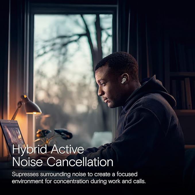 - True Wireless Earbuds With Hybrid ANC – For clear calls and deep focus. Certified for Microsoft Teams, Zoom, Webex, and Google Meet. Multi-point Bluetooth lets you switch between laptop, phone, and tablet seamlessly. Includes USB-C dongle for stable PC connection.