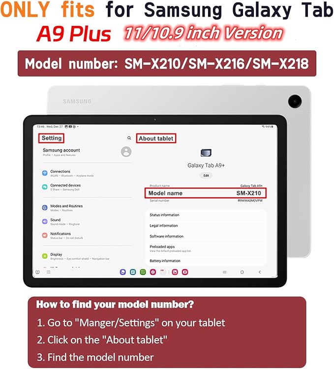 - Compatible Devices : (SM-X210/X216/X218), Samsung galaxy tab a9 plus 11", Samsung galaxy tab a9+ 11 inch