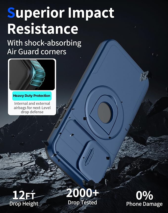 for iPhone 15 Pro Case Compatible with MagSafe Magnetic,with 2 Screen Protectors,Built-in Camera Cover,with Stand Ring,Military Grade Drop Shockproof Heavy Duty Protection Phone Bumper Blue