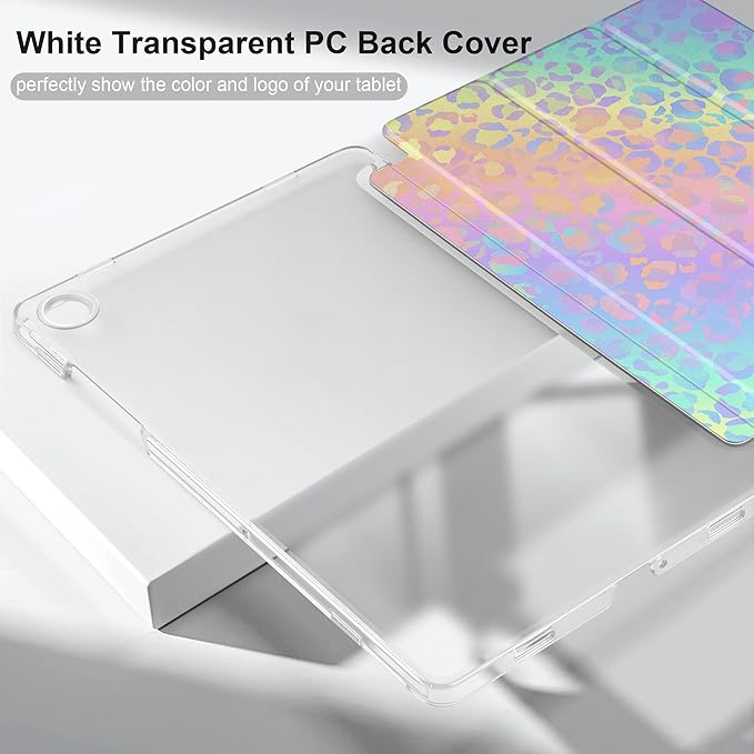 DONGKE Case for Samsung Galaxy Tab A9+/A9 Plus 11 inch 2024 2023 (SM-X210/X216/X218), Slim Stand Hard PC Translucent Back Shell Smart Cover, Auto Wake/Sleep - Colorful Leopard