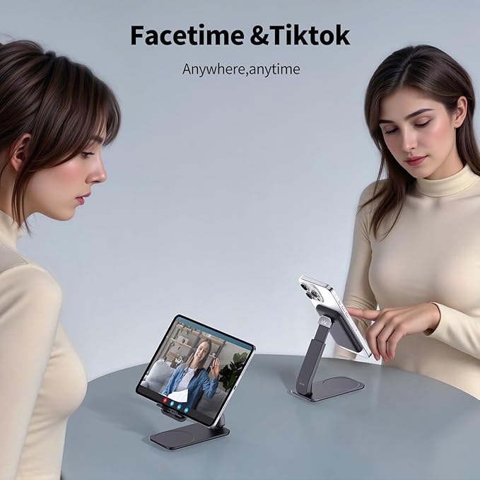 - Wide Compatibility: This multifunctional desk stand is compatible with all types of mobile phones and tablets. It compatible with iPhone 16/15/14/13/12 series, including MagSafe cases, as well as Samsung, Android mobile phones and tablets with magnetic function. iWALK has thoughtfully designed a foldable bracket, even if the device does not have the magnetic function, it can still be firmly held.