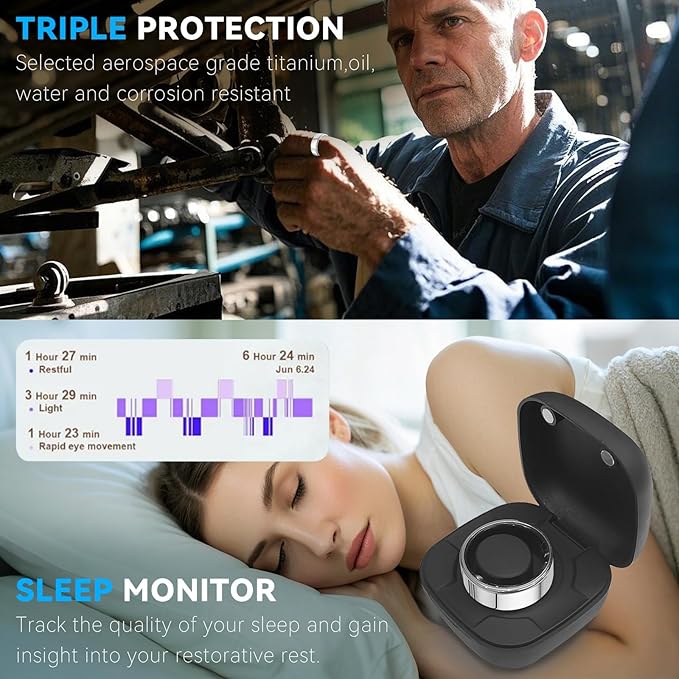 - 【Smart Sleep Tracker】Smart rings can record view your daily, weekly and monthly sleep data in the App, and monitor your falling asleep, waking up time, and sleep quality through charts. It helps you adjust your habits and improve your sleep quality