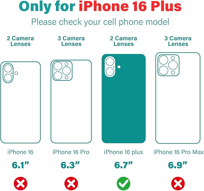 - 【Compatibility】This case is only for iPhone 16 Plus, please check your phone model match when you purchase, if you have any questions please contact us on Amazon