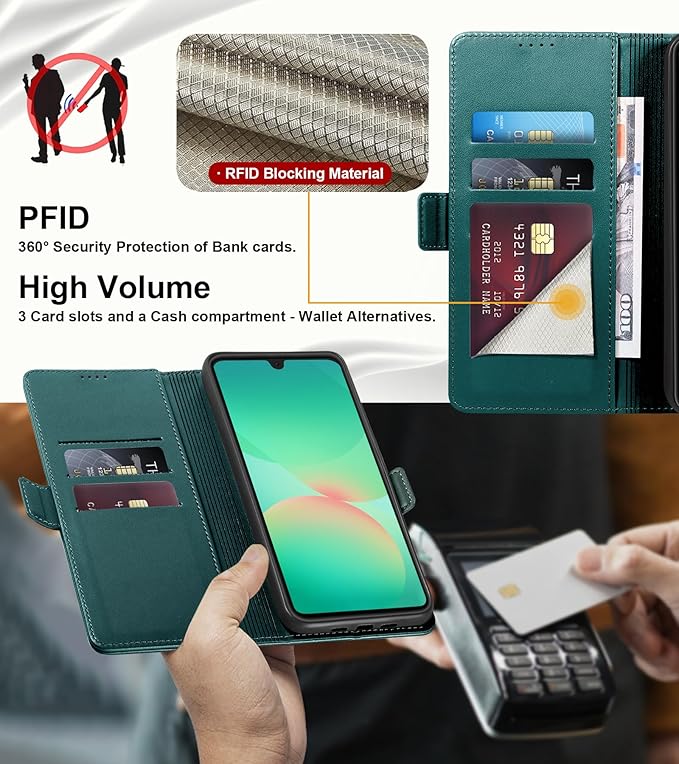 - 【Compatible with Samsung Galaxy A26 5G】:This Leather wallet case fits perfectly on the corresponding phone's sensors, buttons and camera. Sensitive keys, smooth fingerprint unlock, clear earpiece. Please make sure your phone is Samsung Galaxy A26 5G before purchase.
