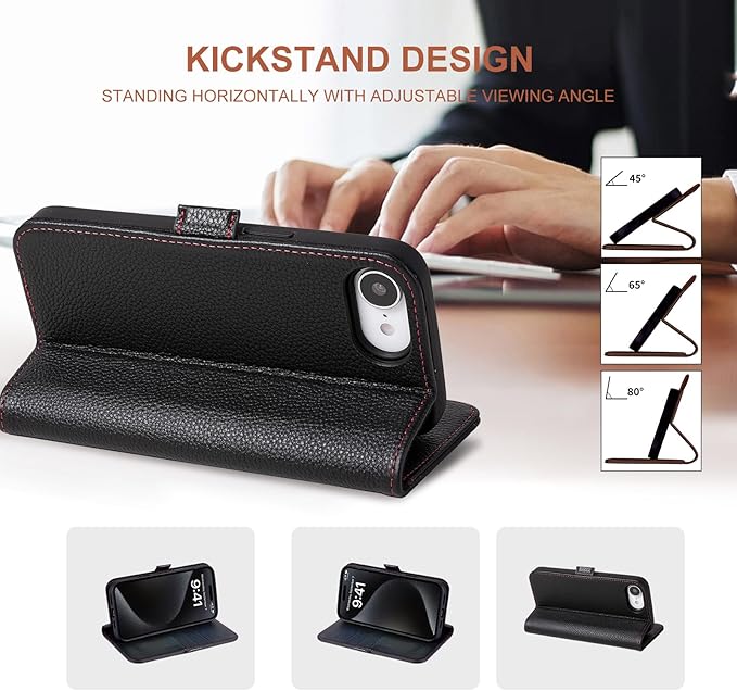 - Magnetic Stand & Seamless Functionality:Built for iPhone 16e, this case includes a foldable magnetic stand for hands-free streaming or FaceTime. Precision cutouts allow full access to ports, speakers. The slim leather case for iPhone 16e slips effortlessly into pockets, perfect for business trips or casual use
