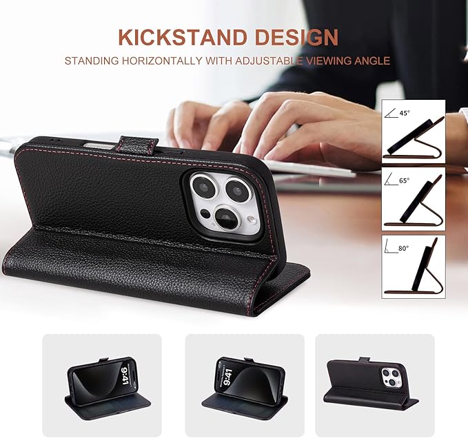- Magnetic Stand & Seamless Functionality:Built for iPhone 16 Pro Max, this case includes a foldable magnetic stand for hands-free streaming or FaceTime. Precision cutouts allow full access to ports, speakers. The slim iPhone 16 Pro Max case leather slips effortlessly into pockets, ideal for business trips or casual outings