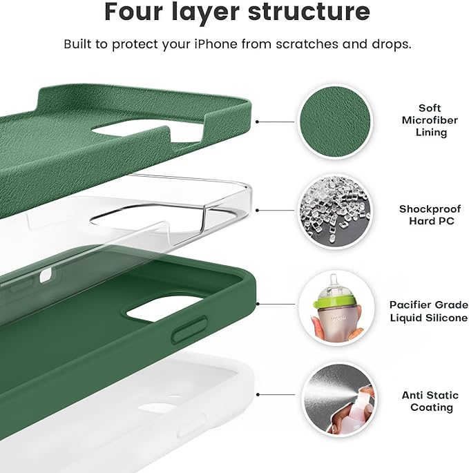 Vooii Compatible with iPhone 12 Case/iPhone 12 Pro Case, Liquid Silicone Upgrade [Soft Anti-Scratch Microfiber Lining] [Shockproof Drop Protection] Phone Case 6.1 inch - Green