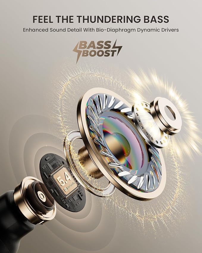 - 【Immersive Sound Quality】wegear wireless earbuds feature Woolen-paper-bio-diaphragm dynamic driver, delivering deep bass and crisp treble for a truly immersive listening experience. The enhanced acoustic design ensures more powerful, penetrating sound than ever before